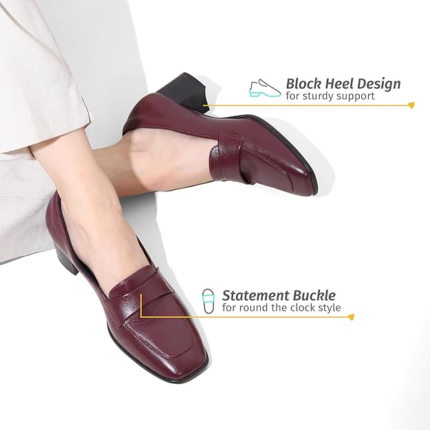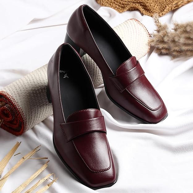 YOHO Bliss Heel 001 Slip-on Loafers for Women | Comfortable & Stylish Block Heels | Fashion Moccasins with Footpharma Footbed | Perfect for Casual & Formal Shoe